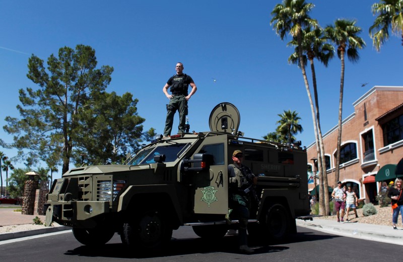 Video posted on news website Arizona Central’s Facebook page showed a truck driving through a large group of protesters. Officers from the county police department worked to clear demonstrators from the motorist’s path.