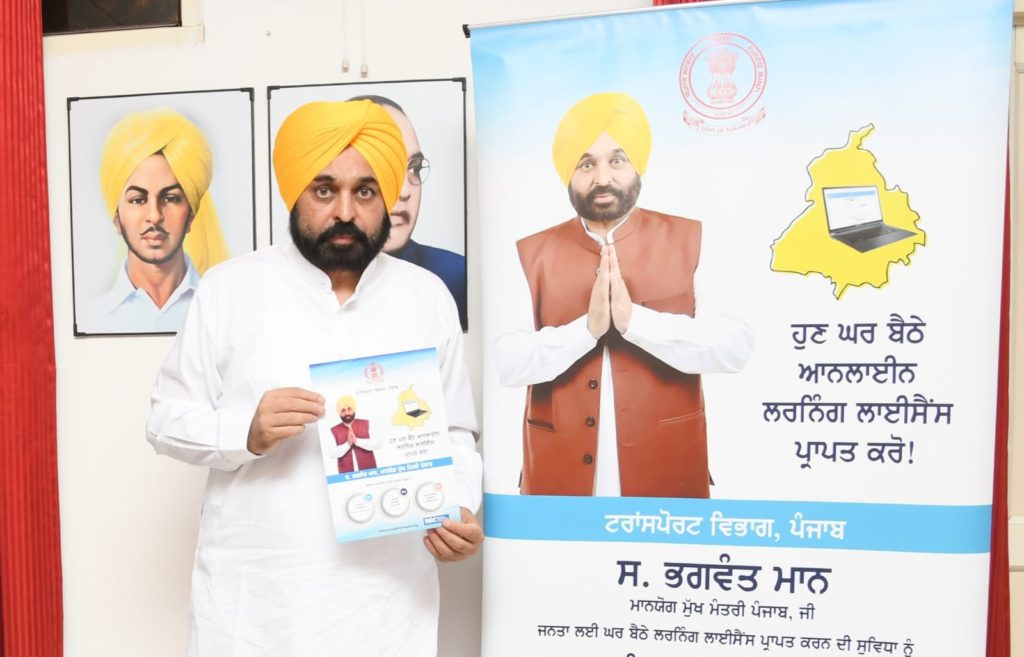 Chandigarh: Punjab Chief Minister Bhagwant Mann on Tuesday launched the online driving license facility for the people thereby facilitating the citizens to get learner’s driving license on a single click of their computer, mobile, tablet or laptop.