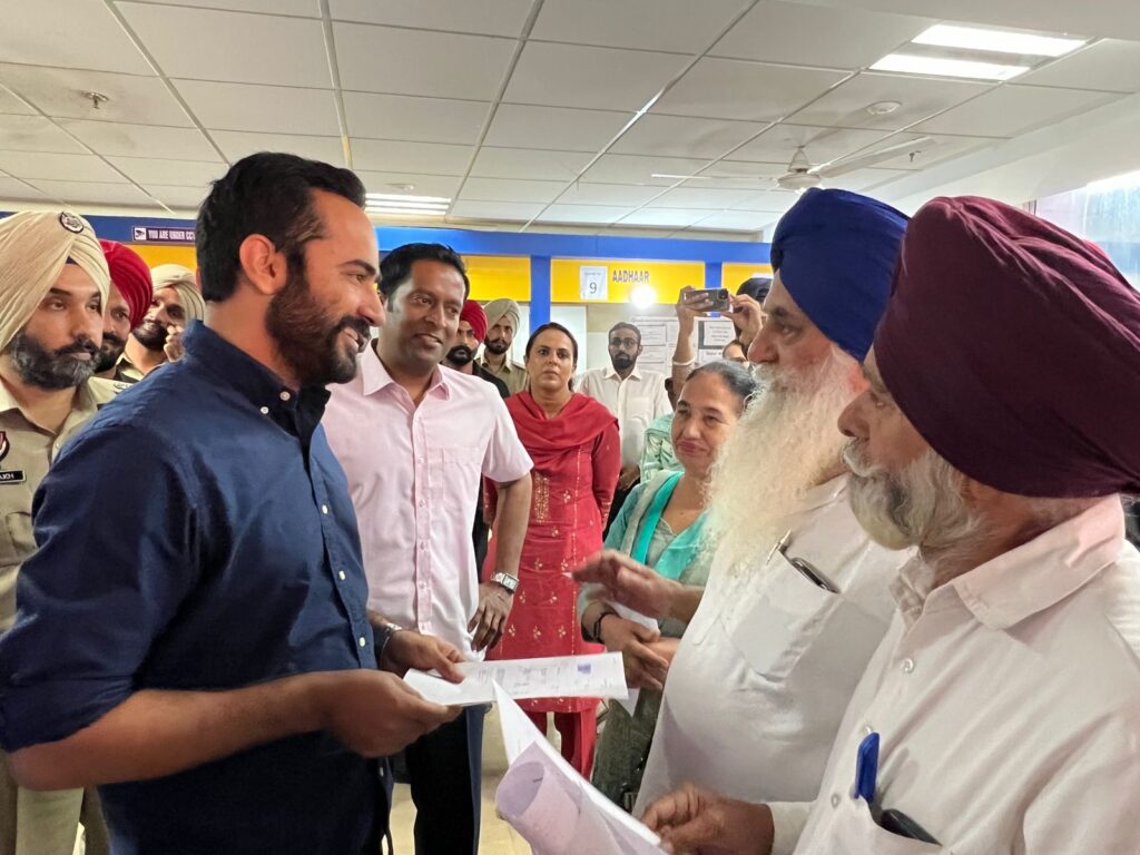 Today Governance Reforms Minister Gurmeet Singh Meet Hayer made surprise visit at the Sewa Kendra situated at District Administrative Complex, SAS Nagar, checked working of Sewa Kendra and interacted with citizen to know about the issues.