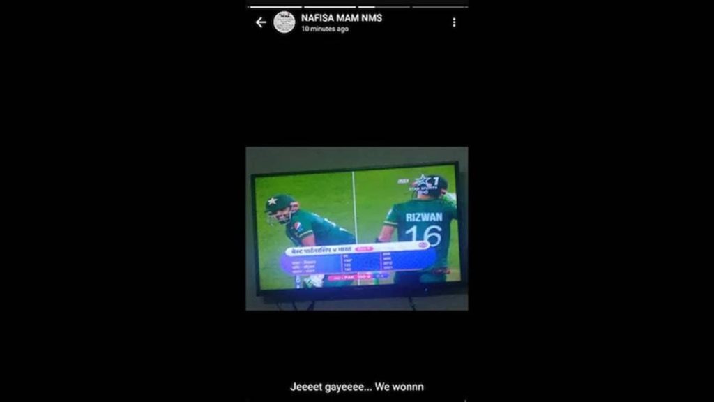 Following this, one of the parents asked the teacher whether she supported Pakistan, Nafeesa replied in the affirmative with a ‘Yes’. The screenshot went viral and the school expelled her from the job.