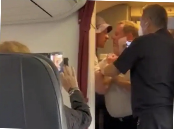 In the video, a scuffle is seen between a passenger and the pilot outside the cockpit. Meanwhile, another passenger and a flight attendant are seen trying to separate the two.