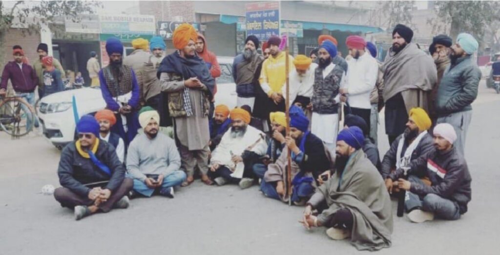 On this occasion, the workers of Sikh organizations gathered on this occasion are strongly opposing the increasing activities of Dera Sirsa and are shouting slogans against the government.
