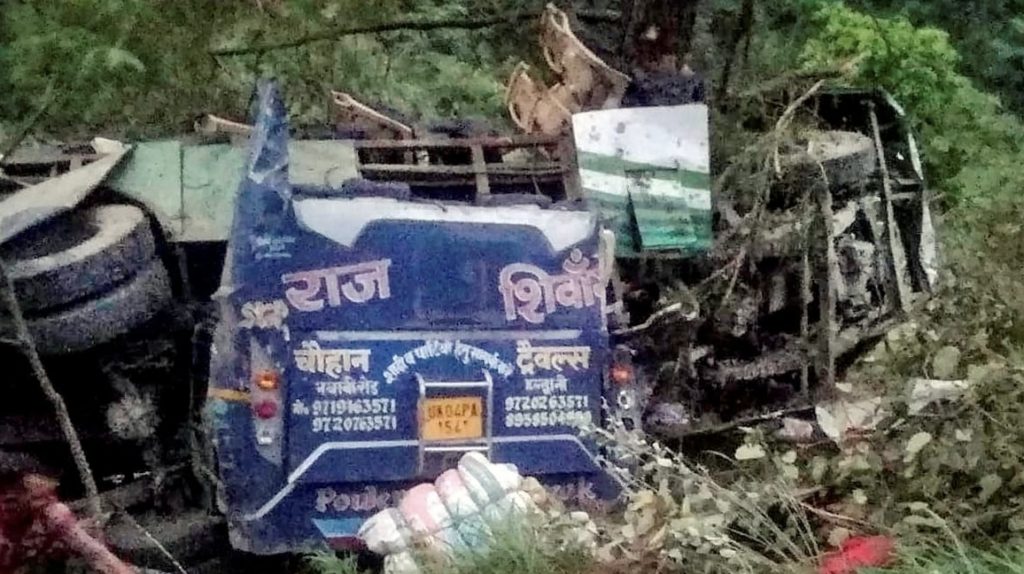 Uttarkashi: Twenty-five passengers on board were killed and three others seriously injured when a bus fell into a deep gorge at Damta in Uttarakhand’s Uttarkashi district.