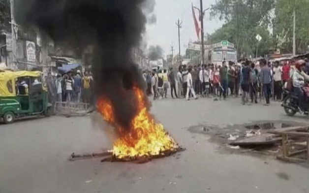 Trains have also been targeted at many places in the outrage. Traffic in Nawada has been completely halted. There was also arson on the road. The tires are burnt.